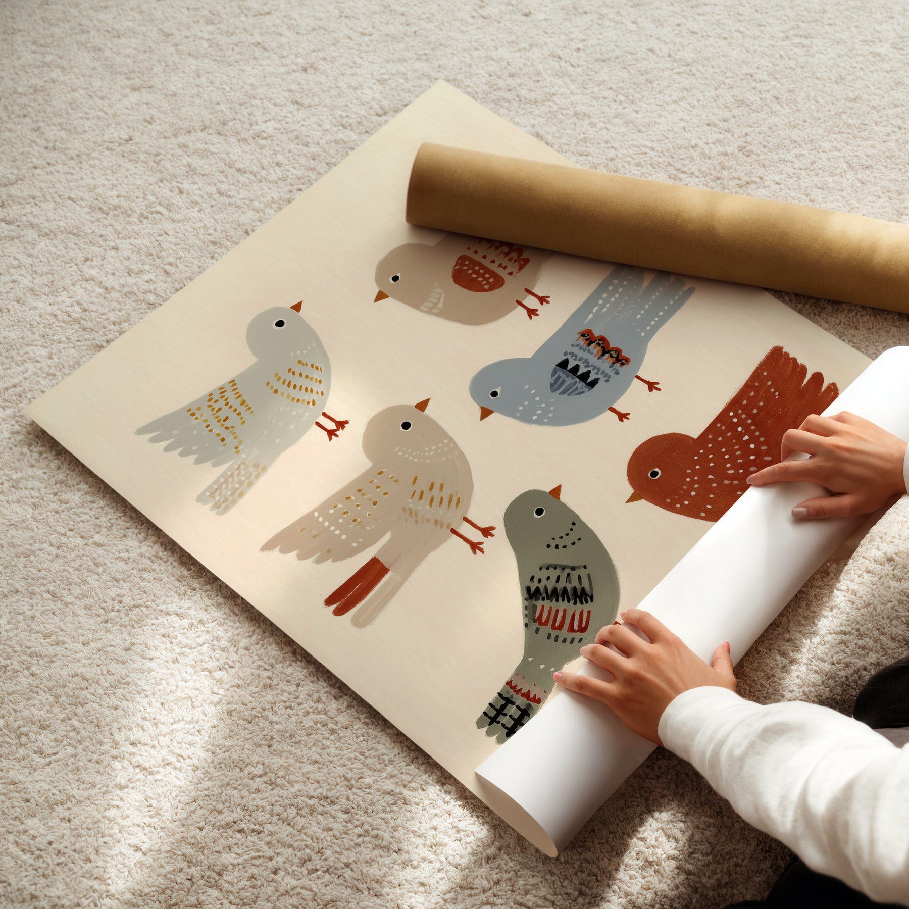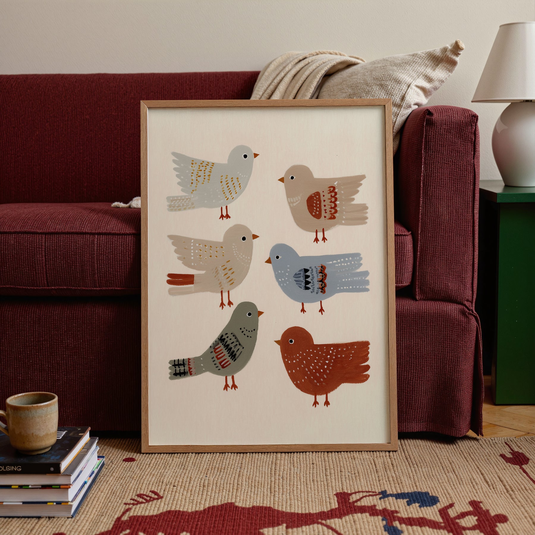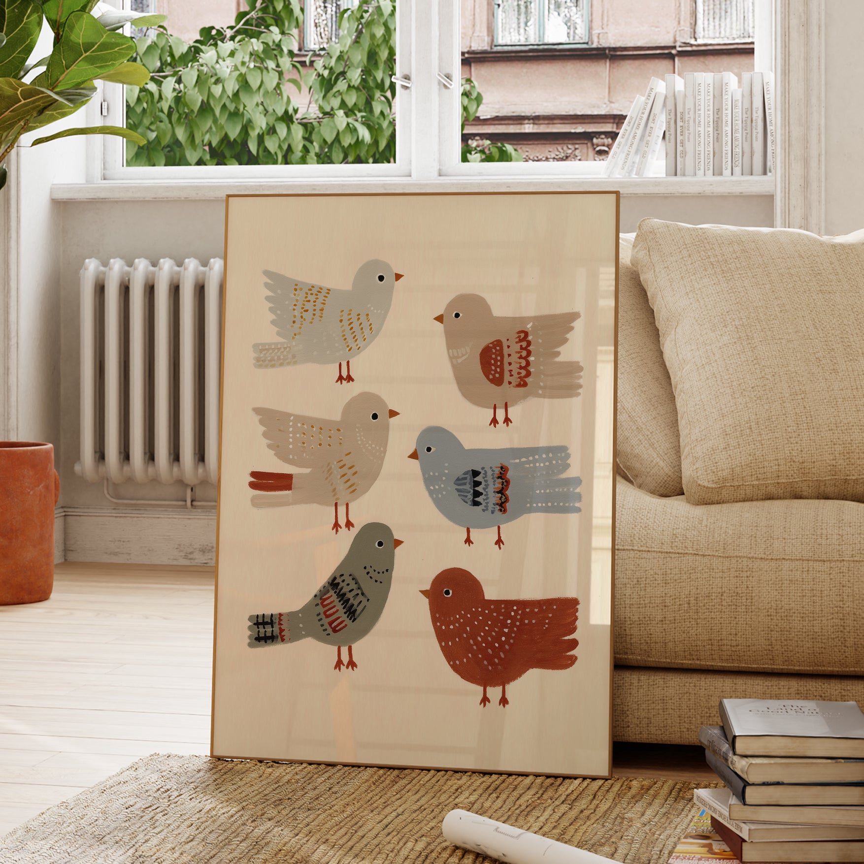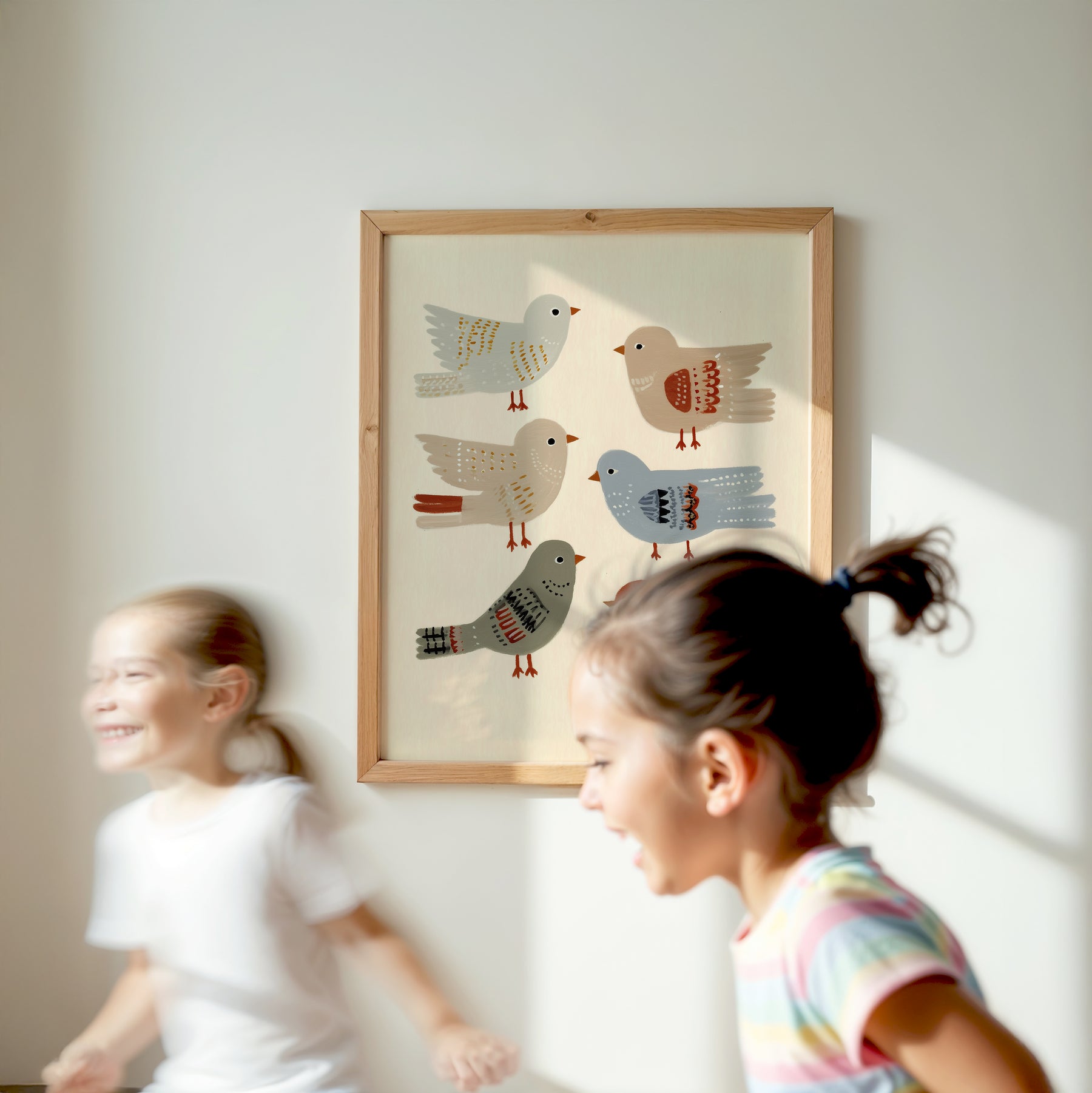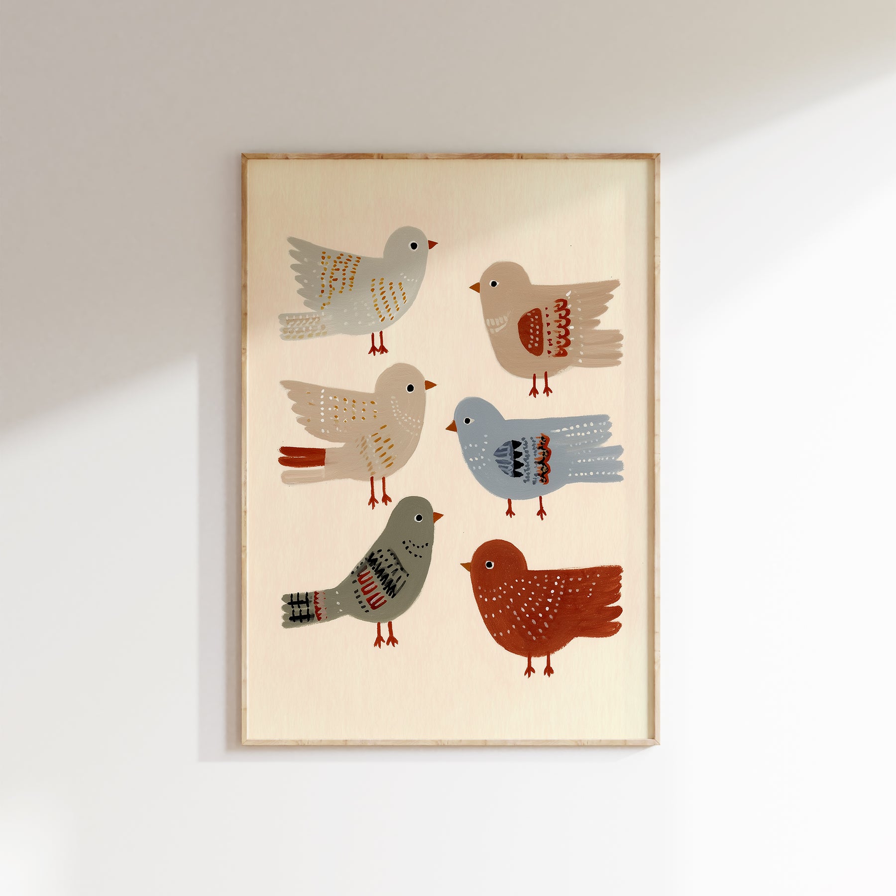 A cheerful flock of feathered friends in soft earthy tones. Birds of a Feather celebrates friendship and joy — a delightful print for nurseries, playrooms, or cozy corners filled with curiosity and charm.