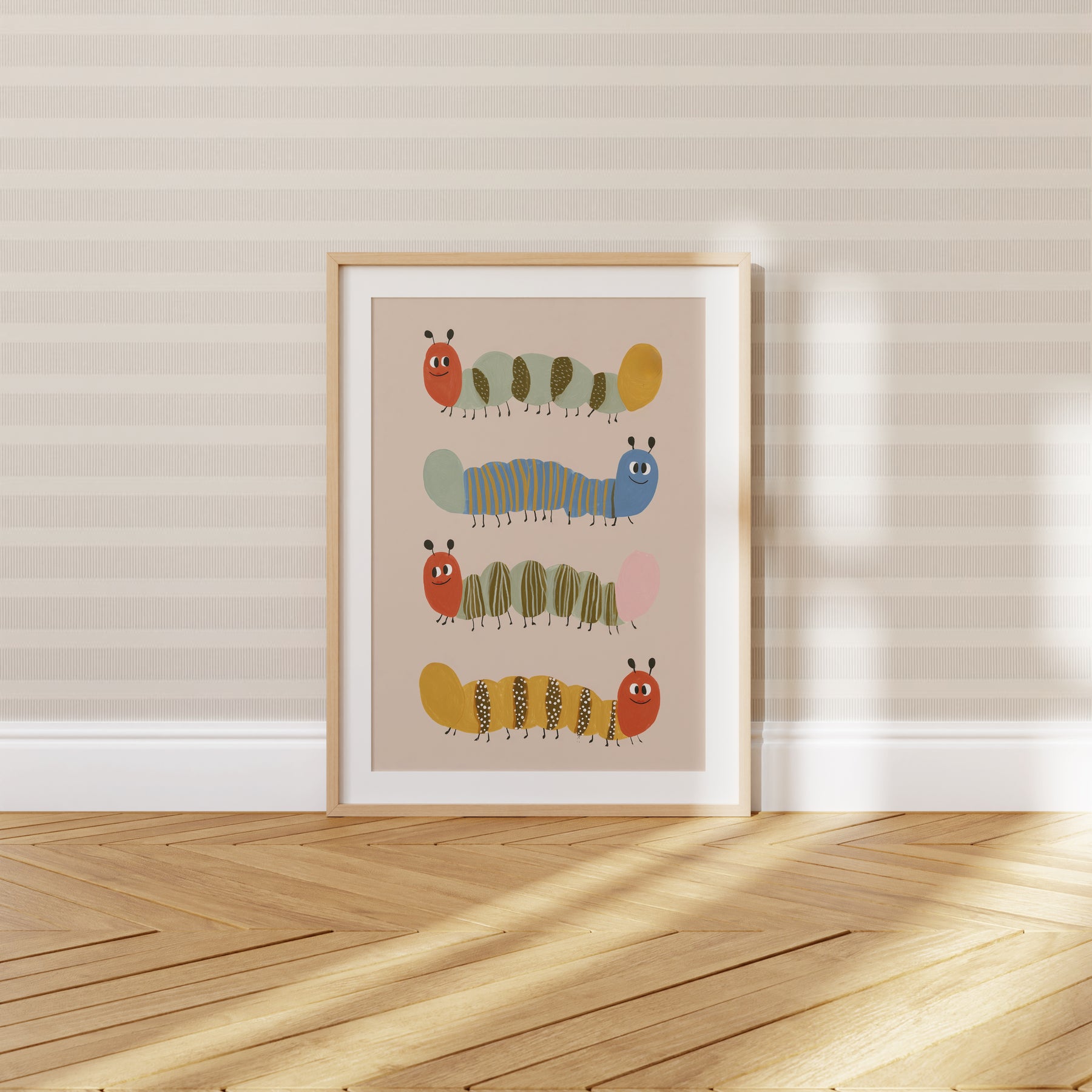Say hello to the Caterpillar Parade — four happy crawlers in bright, earthy tones, bringing movement and fun to your nursery or playroom. Perfect for nature-loving little explorers.