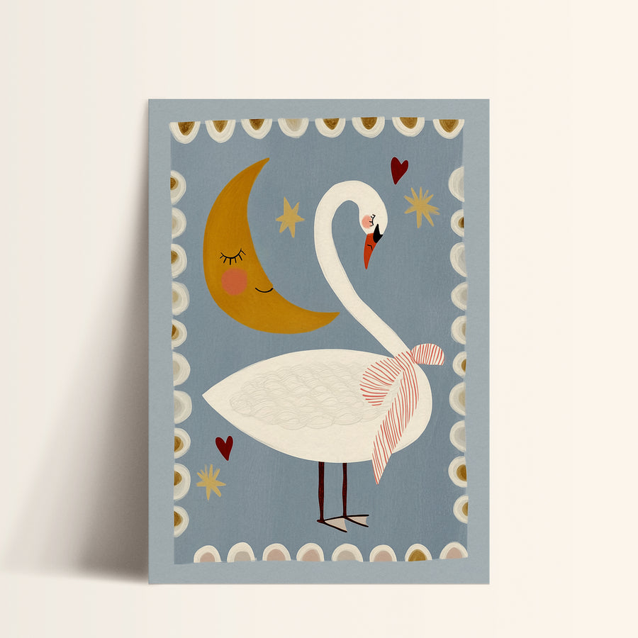 Swan and Moon Folk Art